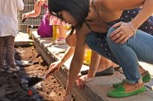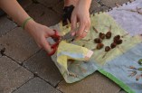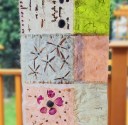 Community engagement Seed Hunting workshops were held at McGill University’s RedPath Museum. Thirty-five Participants hunted for seeds on the University grounds. After harvesting seeds, the participants sat down to a buffet of seeds to create their personal Seed Quilt 1ft x 1ft patch with hand-made biodegradable paper and cotton thread. The quilt patches were sewn together to create an 8ft x 12ft botanical art object. For 3 months the quilt was on exhibit. Then it was planted, watered and weeded. The quilt continues to grow today in the plot next to the Museum.