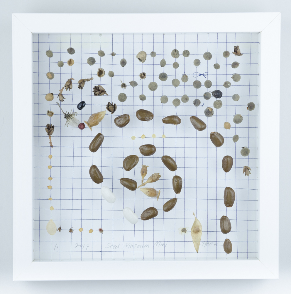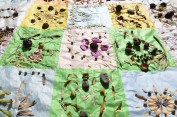 Community engagement Seed Hunting workshops were held at McGill University’s RedPath Museum. Thirty-five Participants hunted for seeds on the University grounds. After harvesting seeds, the participants sat down to a buffet of seeds to create their personal Seed Quilt 1ft x 1ft patch with hand-made biodegradable paper and cotton thread. The quilt patches were sewn together to create an 8ft x 12ft botanical art object. For 3 months the quilt was on exhibit. Then it was planted, watered and weeded. The quilt continues to grow today in the plot next to the Museum.